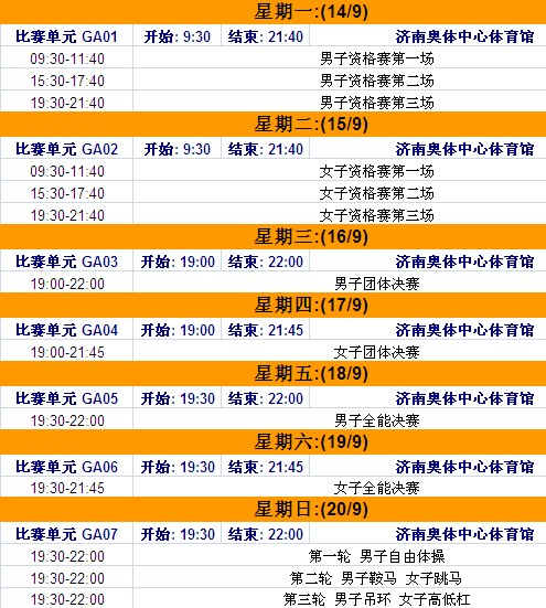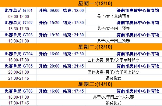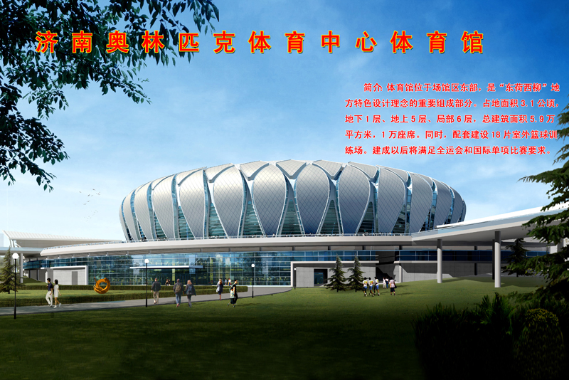 奥体中心体育馆,位于奥体中心场馆区东部,占地面积3.1公倾,地下1层,地上5层,局部6层,建筑面积5.9万平方米,10000座席。同时配套建设18片室外篮球训练场,建成后可满足全运会及国际单项比赛要求。届时承担十一运体操(9月14日--21日)、蹦床(10月12日—14日)比赛项目。