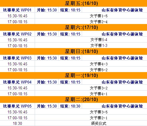 省体育中心游泳馆承担十一届全运会男子(10月21日--27日)、女子(10月16日--20日)水球比赛项目。
