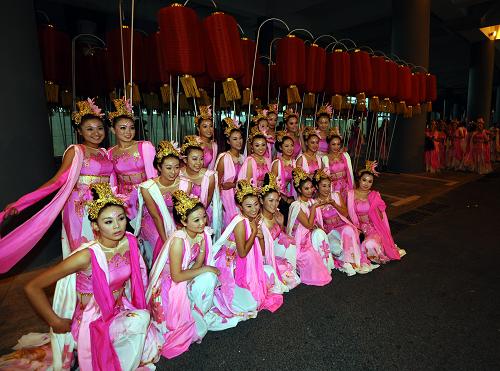 参加开幕式的演员准备入场