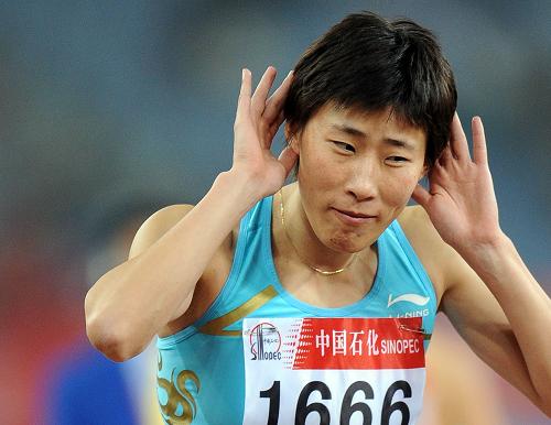10月22日,山东队选手黄潇潇在赛后聆听观众欢呼。当日,在济南奥体中心体育场举行的第十一届全国运动会田径女子400米决赛中,黄潇潇以52秒23的成绩获得冠军。 新华社记者 刘大伟摄