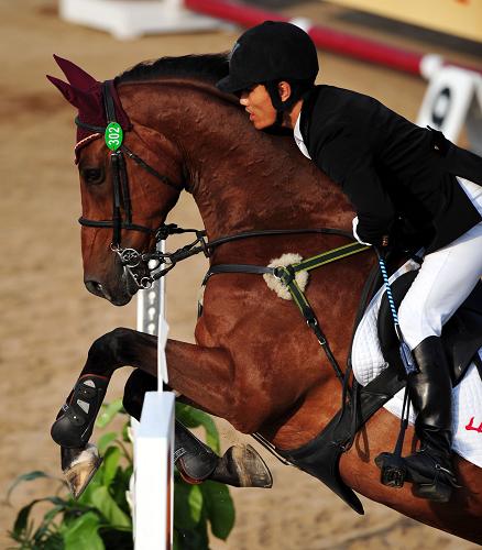 10月23日,上海队骑手夏伦伍驾驭赛马“天武者”在场地障碍赛中。当日,第十一届全运会马术三项赛团体赛进行了场地障碍赛。最终,上海队以三项团体总罚分192.00分的成绩夺冠。