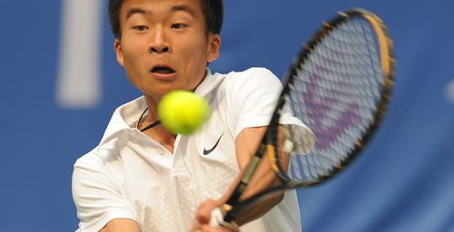 10月27日,上海队选手吴迪在比赛中回球。当日,在第十一届全运会网球男子单打决赛中,吴迪以2比0战胜江苏队选手曾少眩,夺得冠军。